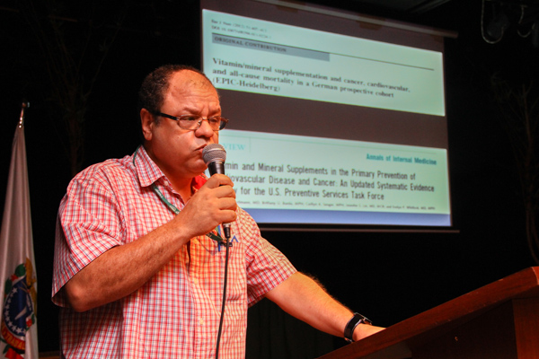 Para dar inicio ao ciclo de palestras, o professor doutor Alceu Afonso Jordão Junior, do curso de Nutrição e Metabolismo da USP, abriu o evento discutindo sobre a suplementação com antioxidantes. “Cabe especialmente ao profissional de saúde, nesse caso ao nutricionista, poder passar para o paciente uma informação correta e embasada sobre as causas e efeitos do uso indiscriminado de vitaminas e suplementos, uma vez que essas substâncias estão em alta no mercado e na mídia”, explica.