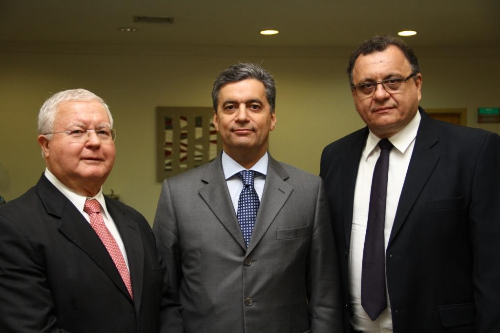 O juiz Federal, doutor Augusto Martinez Perez; o desembargador, doutor Fábio Prieto de Souza e o coordenador do curso de Direito da Unaerp e promotor de Justiça e Cidadania de Ribeirão Preto, doutor Sebastião Sérgio da Silveira no encerramento da Semana Jurídica