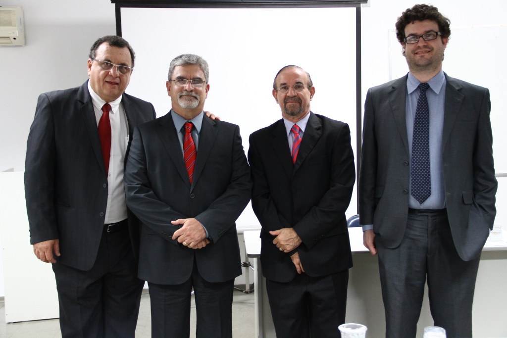 Da esquerda para direita: professor doutor Sebastião Sérgio da Silveira, o mestrando Antonio José Franco de Souza Pêcego, professor doutor Cézar Roberto Bitencourt e professor doutor Rafael Tomaz de Oliveira