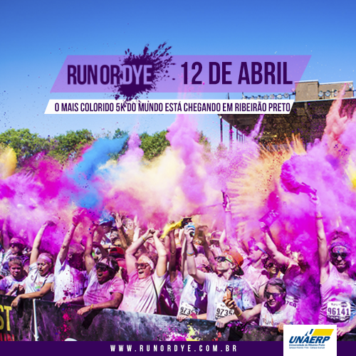 O evento será realizado no dia 12 de abril, a partir das 7h30, com largada no Campus da Unaerp. Mais informações: http://www.runordye.com.br/event-riberao.html#.VRlpJvzF-JQ .