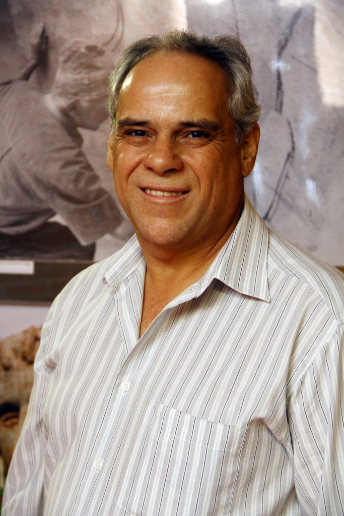 O jornalista fotográfico Newton Barbosa na abertura da exposição "Marcas da História"