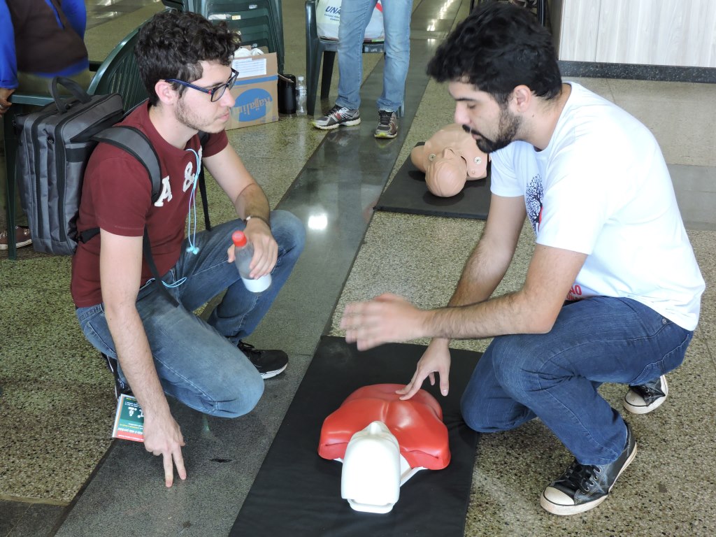 Estudante de Medicina ensinando a Massagem cardíaca