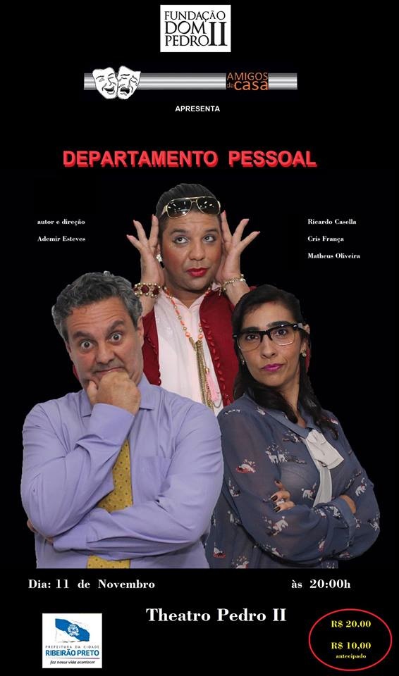 No próximo dia 11 de novembro, às 20h, o Theatro Pedro II recebe a peça Departamento Pessoal, comédia que conta a história de um homem e uma mulher que concorrem à mesma vaga de emprego.