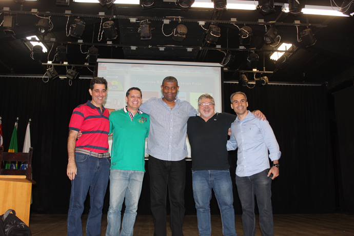 Coordenador do curso de Educação Física, Emerson José Zechin com os professores Kleber Parada, Antônio Carlos Gomes, Peterson Antunes de Campos e Marcelo Jabur