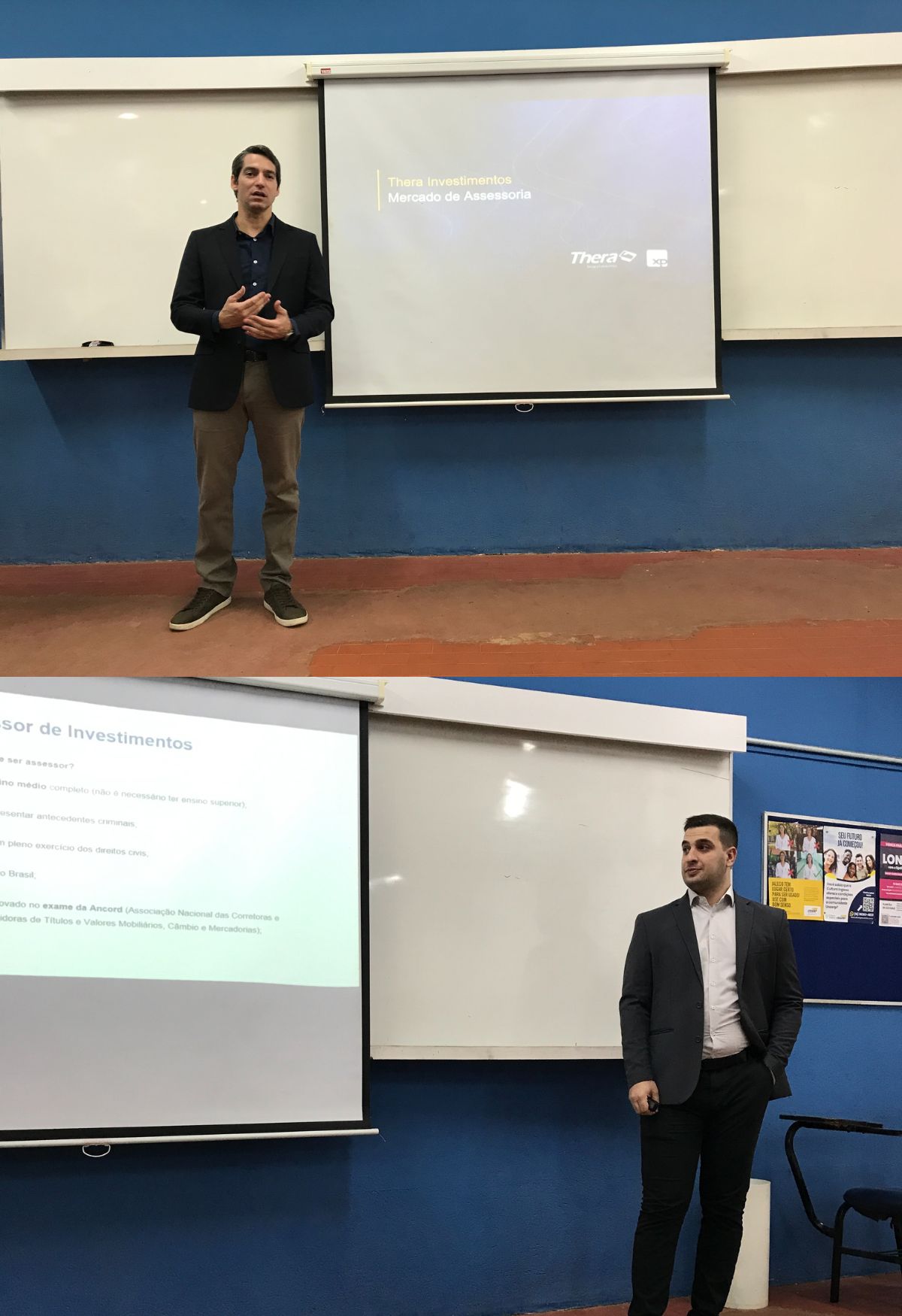 O evento foi ministrado pelos assessores Leandro Fernandes Mata e Gabriel Mattar Assalin, da Thera Investimentos